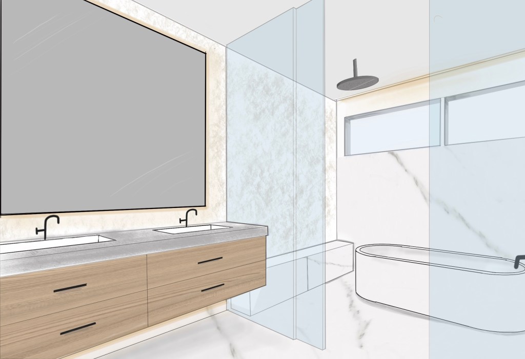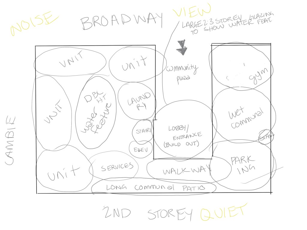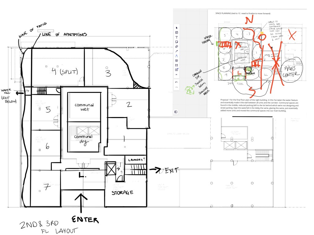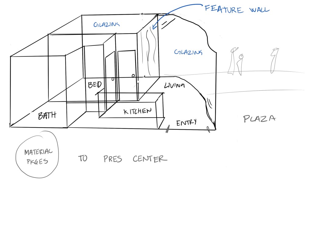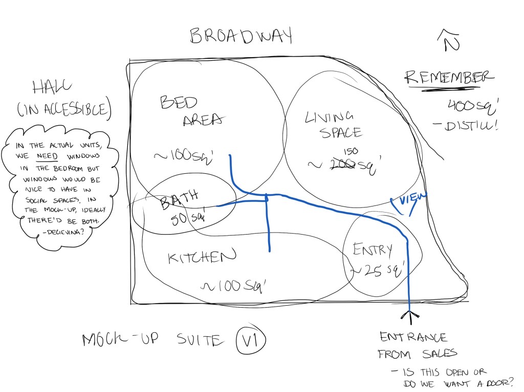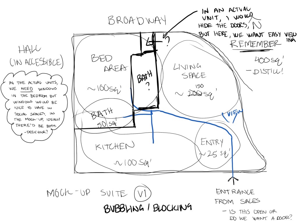 Mock-up suite hand drawn paraline; planning volumetrically cannot happen in 2D.
