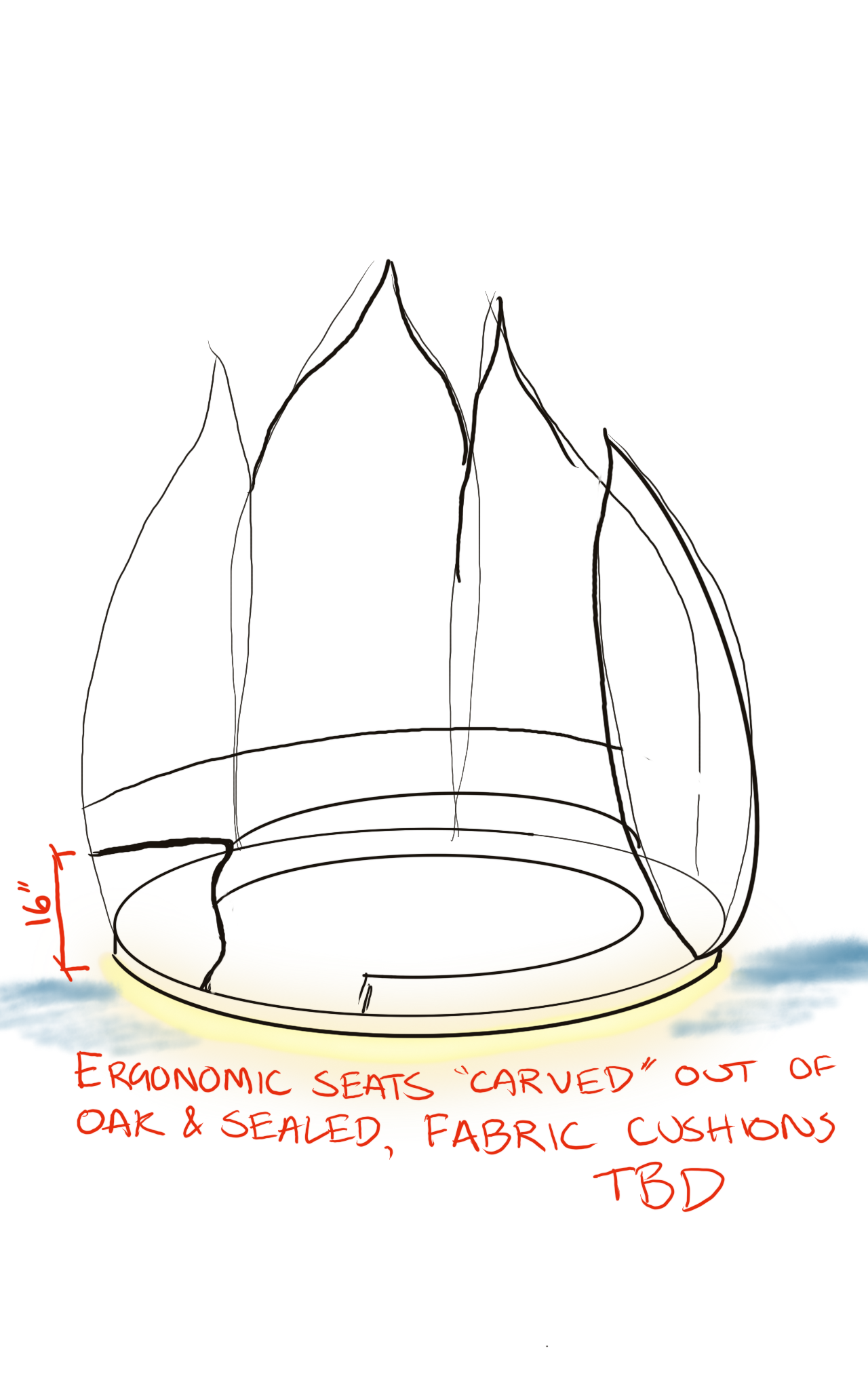 The circular booths were inspired by Jeong Kwan’s famous “Enlightenment Tea,” which is made by slowly and carefully drawing out the petals of a lotus, leaving a lightly floral brew.