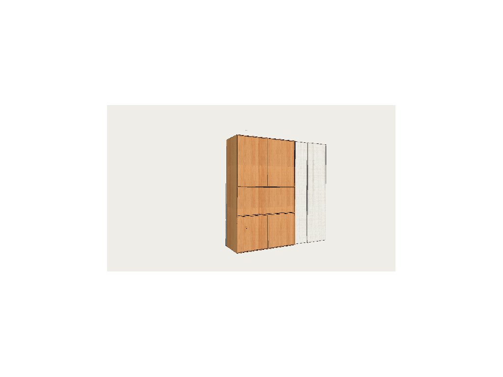 Custom millwork slides on a track to create sleeping, eating, and relaxing zones. On one side – a closet, on the other – a dining table, and in the center – a pull out screen to create a closed off bedroom.